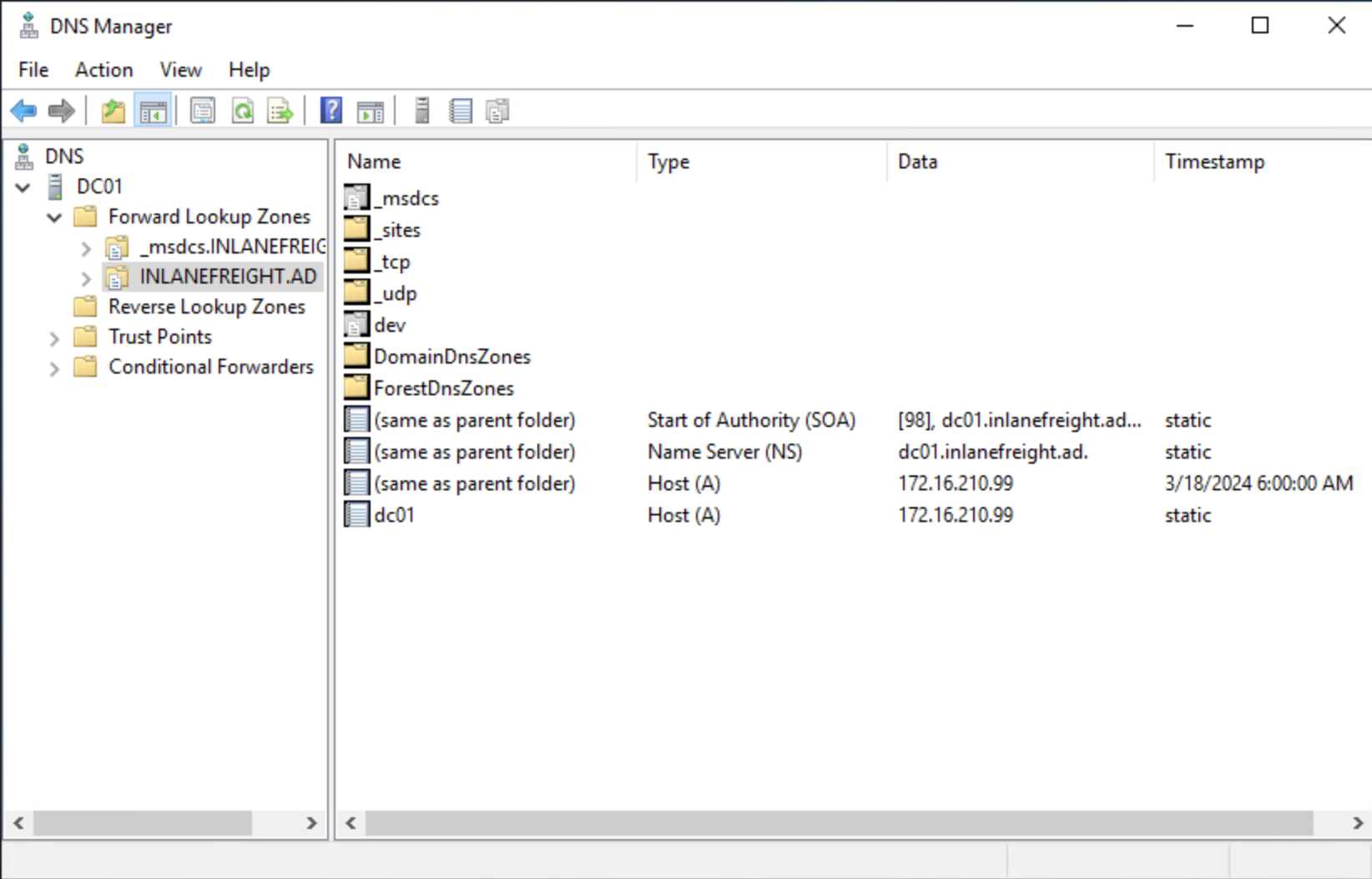 DEV01.inlanefreight.ad A 599 Answer 172.16.210.3