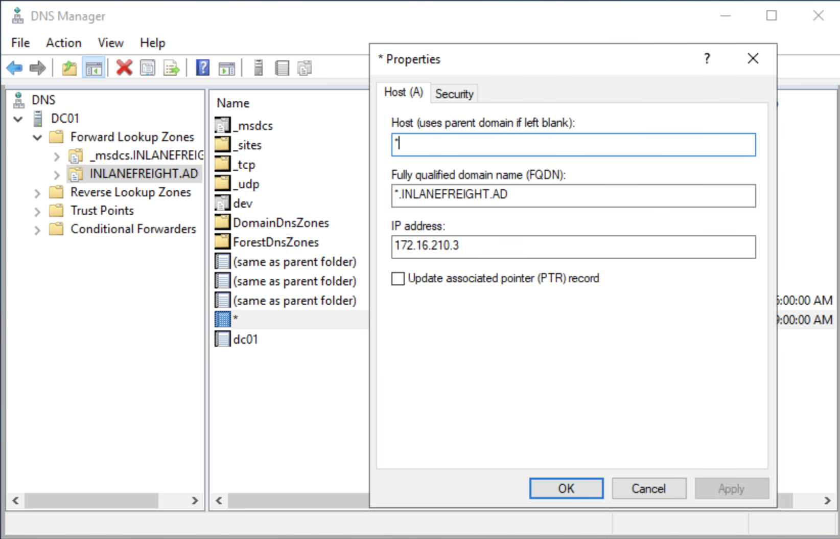 PS C:\Tools> Set-DnsServerResourceRecord -NewInputObject $New -OldInputObject $Old -ComputerName DC01.INLANEFREIGHT.AD -ZoneName inlanefreight.ad