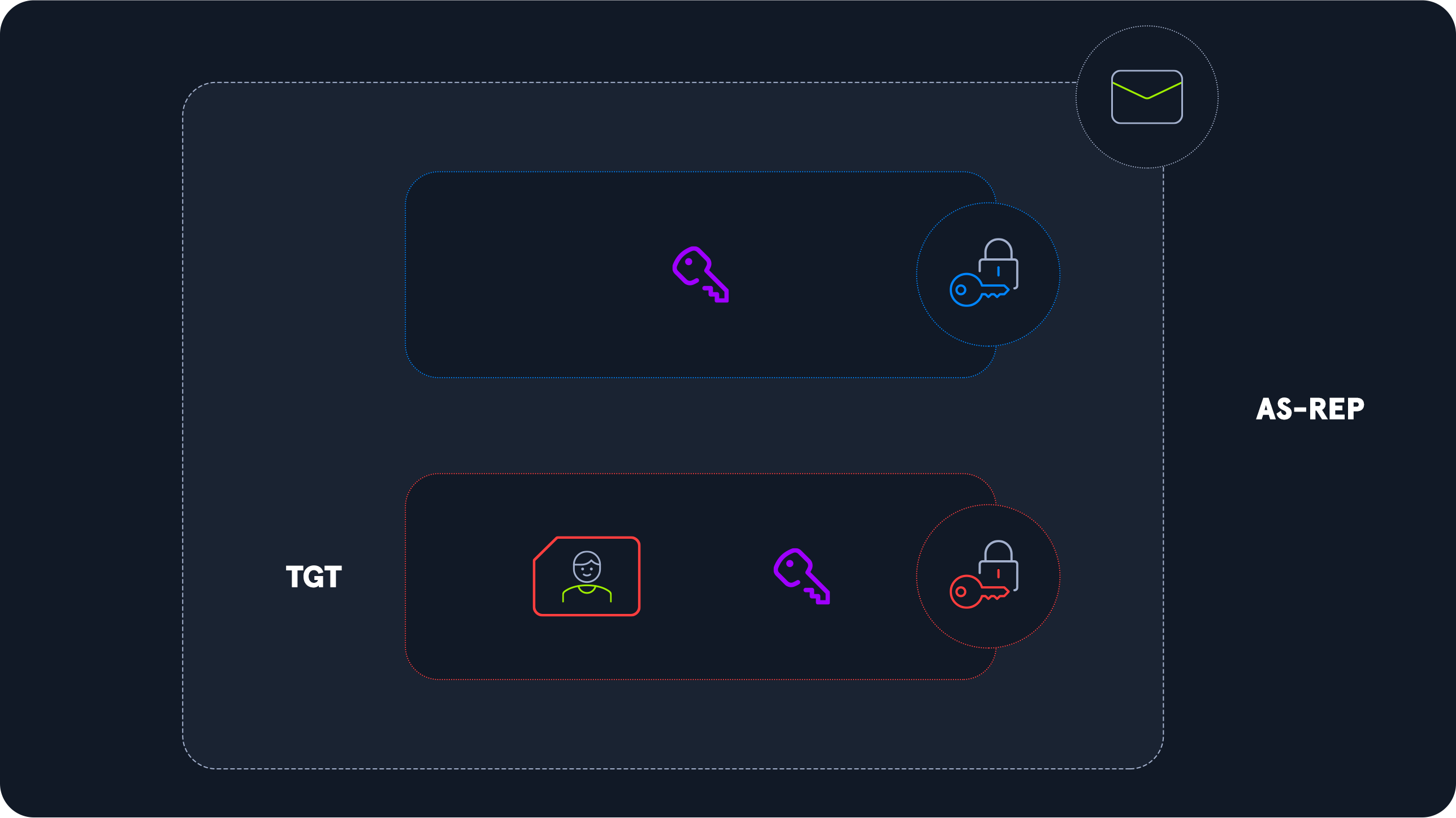 TGT (Ticket Granting Ticket) Requests are encrypted with the current timestamp and the account's password. The Domain Controller will decrypt this to validate that the correct password was used. If successful, a TGT will be issued to the user for further authentication requests in the domain via an AS-REP response. A session key will be provided alongside the TGT and encrypted using the user's password.