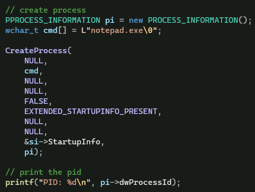 void BeaconInjectProcess(HANDLE hProc, int pid, char * payload, int p_len, int p_offset, char * arg, int a_len);