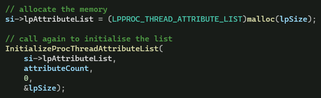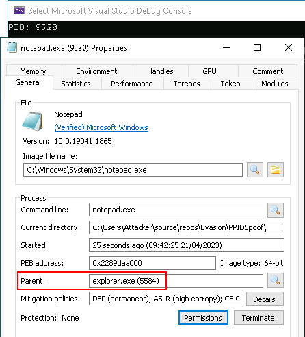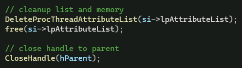 Generar un proceso conlleva todas las complicaciones relacionadas con la relación padre-hijo. Técnicas como PPID spoofing pueden ayudar, pero también tienen sus propias huellas de detección. Una vez que se ha iniciado el proceso con éxito, la capacidad de post-ex debe inyectarse en él. En la mayoría de los casos con Cobalt Strike, estos llegan como reflective DLLs adicionales que se inyectan en la memoria del proceso recién iniciado como shellcode. Esta inyección remota es difícil de lograr sin ser detectado por un buen AV y EDR, incluso si AMSI y ETW están silenciados.