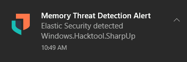Te encontrarás con situaciones donde los escáneres en memoria pueden detectar herramientas conocidas basándose en firmas estáticas, incluso si otras partes de tu cadena de ejecución (ppid, spawnto, etc.) "coinciden". Por ejemplo, ejecutar SharpUp activará la alerta Windows.Hacktool.SharpUp.