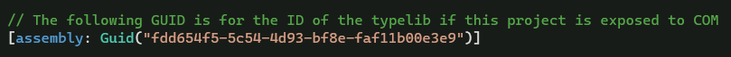 El GUID puede encontrarse en AssemblyInfo.cs.