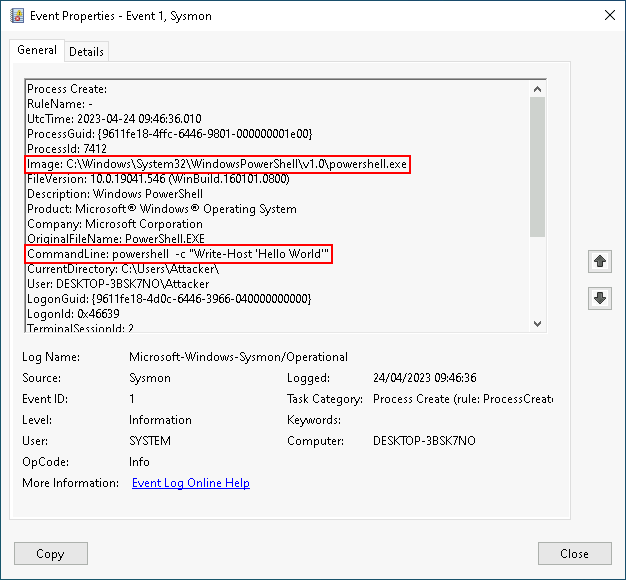 PS C:\Users\Attacker> $event = Get-EventLog -LogName SilkService-Log -Message *Rubeus* | select -Last 1 -ExpandProperty Message | ConvertFrom-Json
