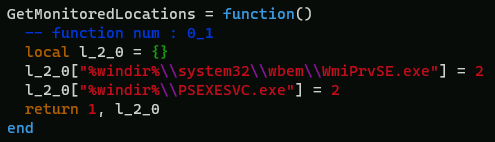 Esta regla funciona igual que "block Office applications from creating child processes". En la extracción que realicé, el script LUA se encuentra en 4138.lua. Las dos aplicaciones monitoreadas son WmiPrvSE.exe y PSEXESVC.exe.