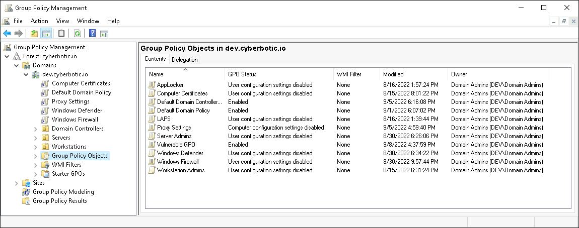 ObjectDN : CN={5059FAC1-5E94-4361-95D3-3BB235A23928},CN=Policies,CN=System,DC=dev,DC=cyberbotic,DC=io