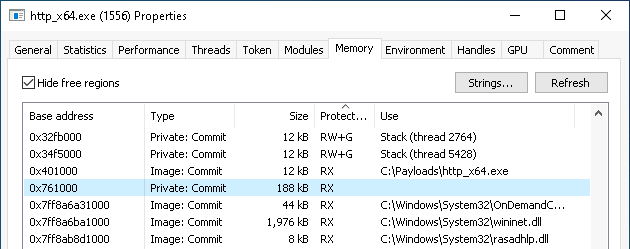 - readfile - el artefacto se lee a sí mismo desde el disco y busca encontrar el shellcode incrustado.