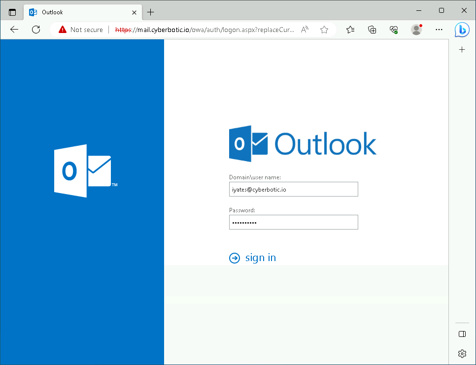 Abre un navegador en Attacker Desktop, navega a https://mail.cyberbotic.io e inicia sesión con las credenciales obtenidas.