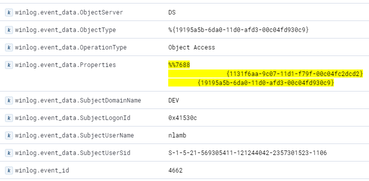 La replicación de directorios puede ser detectada si la auditoría de acceso al servicio de directorio está habilitada, buscando eventos 4662 donde el GUID identificador es 1131f6aa-9c07-11d1-f79f-00c04fc2dcd2 (para DS-Replication-Get-Changes y DS-Replication-Get-Changes-All) o 89e95b76-444d-4c62-991a-0facbeda640c (DS-Replication-Get-Changes-In-Filtered-Set).